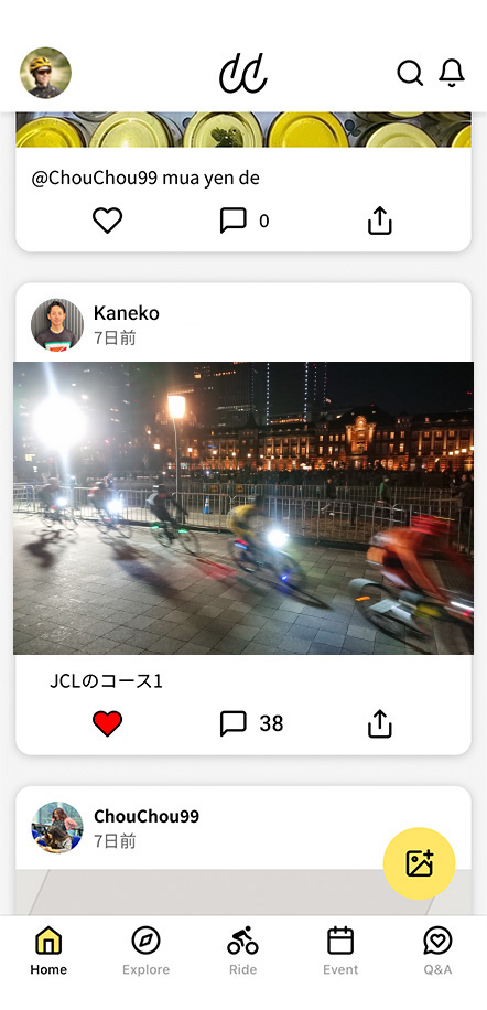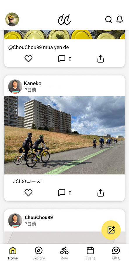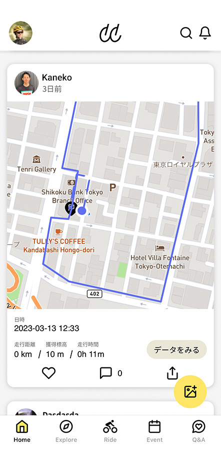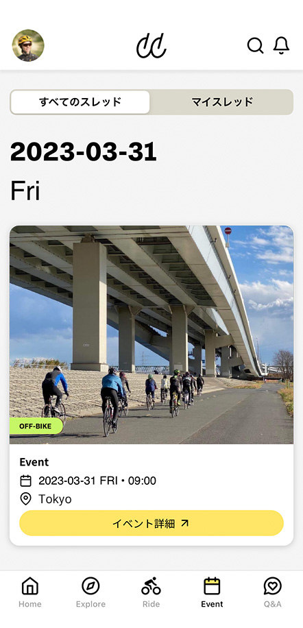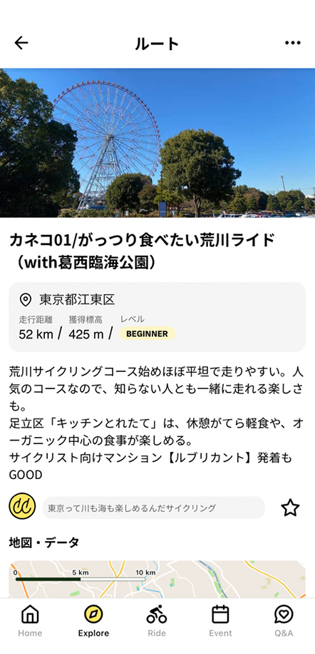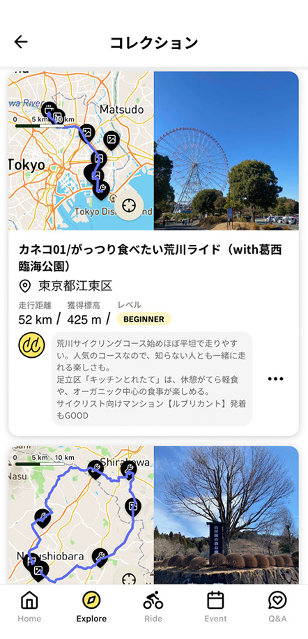 コースリストをもとに、ユーザーがリアルでライドができる。