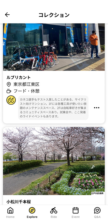 プロライダーや仲間がおすすめするライドコースリスト。自分のレベルにマッチしたライドコースを探せます。